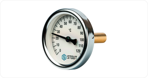 Принцип работы этого вида термометров основан на различном коэффициенте температурного расширения металлов. В его конструкции есть биметаллическая пластина, состоящая из двух различных металлов. При нагреве один из них начинает деформироваться, тем самым изменяя показания на индикаторе. Это довольно надежные устройства, которые отличаются высокой точностью показаний. Но у них есть один недостаток – большая инертность. При резком изменении температуры среды показания отобразятся не сразу, а только через некоторое время. Это может быть существенным при поступлении уже нагретого теплоносителя в систему отопления.