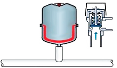 Когда температура в системе повышается, открывается клапан. Он забирает из системы излишки теплоносителя и отправляет их в бак. При снижении температуры вода из бака закачивается обратно в систему с помощью насосов. Получается, что такая установка поддерживает оптимальное давление в системе.