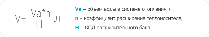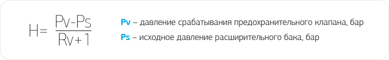 КПД расширительного бака (H) считается по формуле:
