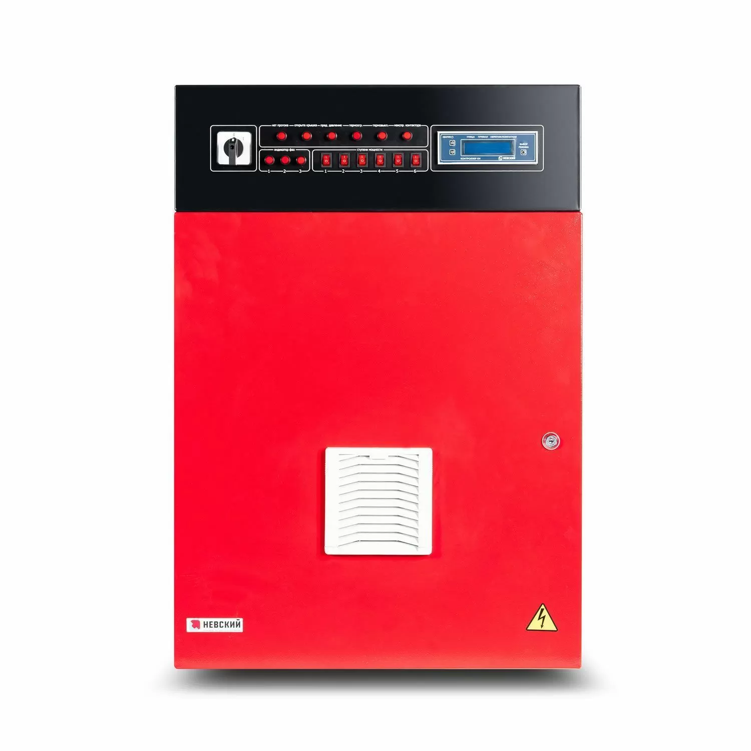 Шкаф автоматики и управления водонагревателя имеет встроенный контроллер, обеспечивающий плавное регулирование температуры и автоматический выбор требуемой мощности.  Шкаф автоматики и управления обеспечивает многоступенчатую защиту, как каждого нагревательного элемента, так и всего водонагревателя в целом по всем возможным параметрам.